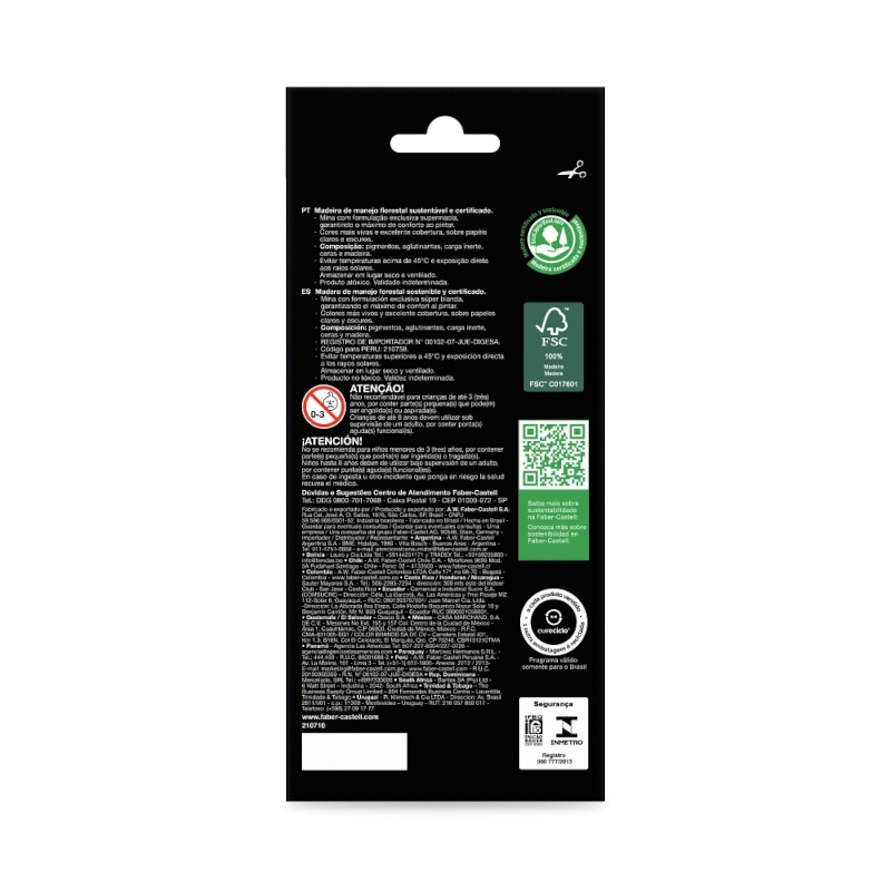 Lápis de Cor Eco Redondo SuperSoft 12 Cores – Faber-Castell – Ecolápis de Cor Faber-Castell SuperSoft possui a exclusiva mina supermacia, que garante o máximo de conforto ao pintar. Esse kit contém 12 cores mais vivas com excelente cobertura sobre papéis claros e escuros e 2 Ecolápis SuperSoft com mina de grafite, ideal para escrever. Além disso, a embalagem é reutilizável e 100% reciclável.